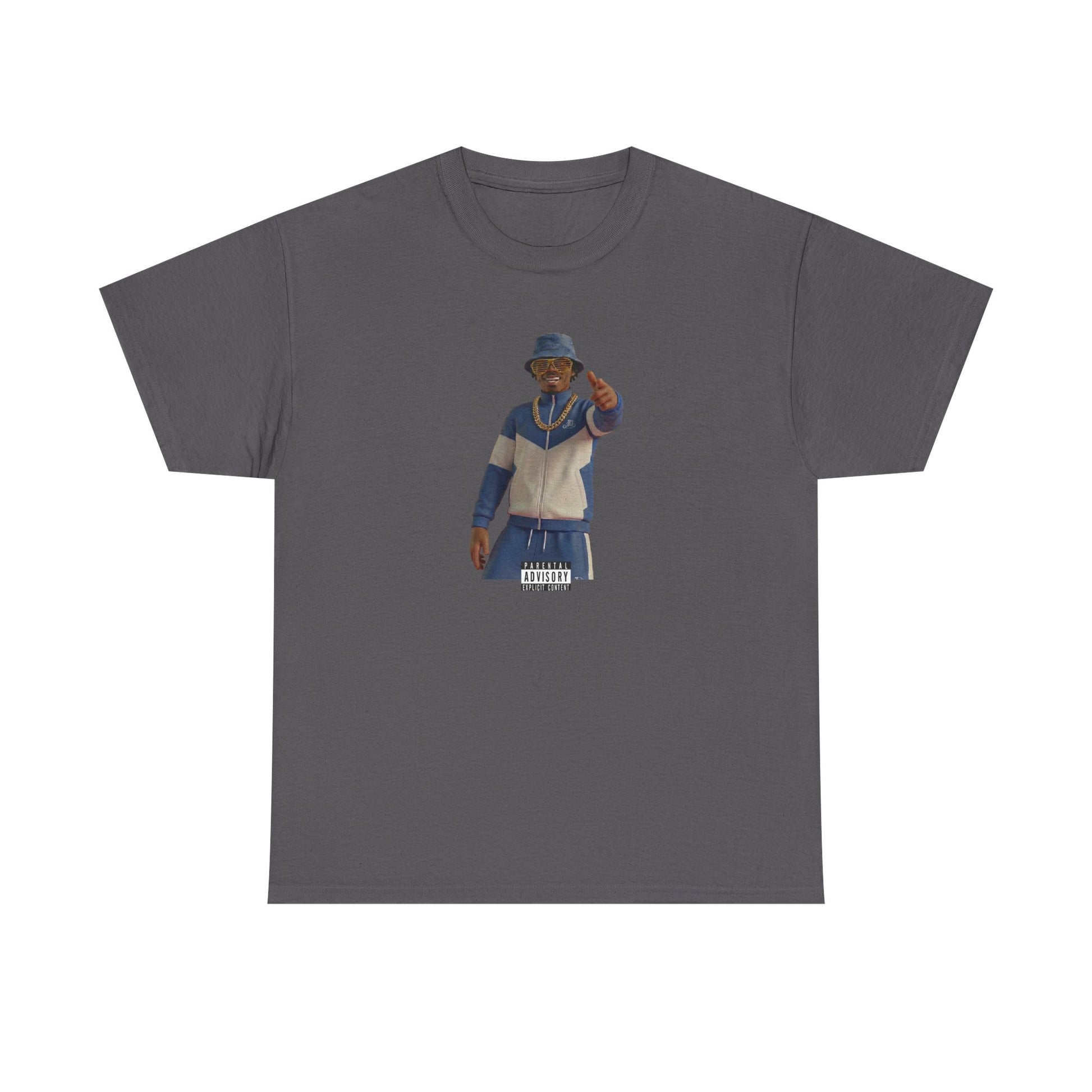 This relaxed cotton tee carries a laid-back street vibe a clean white canvas with a centered photo-style print of a casually confident figure in bucket hat and layered knitwear. Wear it layered under a jacket or alone with denim to showcase the graphic; it reads like a subtle statement piece for listeners of hip-hop